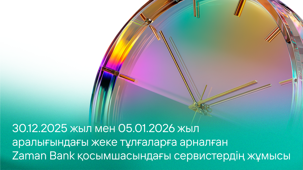 Zaman Bank 2025 жылғы 30 желтоқсан мен 2026 жылғы 5 қаңтар аралығында Банктің жеке тұлғаларға арналған мобильді қосымшасындағы сервистердің жұмысы туралы хабарлайды.